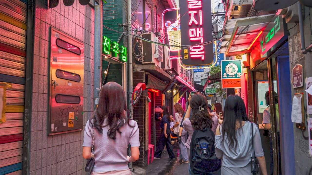 No coração do distrito de Yongsan, no bairro de Haebangchon, o Sinheung Marke, que existe há décadas, está sendo revitalizado: as vielinhas onde funcionam pequenos estabelecimentos familiares ganharam nova pavimentação e luminosos de neon, atraindo assim bebedores curiosos e gourmets aventureiros.