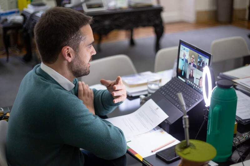 Foto: Maicon Hinrichsen/Palácio PiratiniEm reunião virtual com a participação do governador Eduardo Leite, a Corsan assinou, nesta quarta-feira (30), um financiamento no valor de R$ 300 milhões com a IFC (International Finance Corporation), vinculada ao Grupo Banco Mundial.