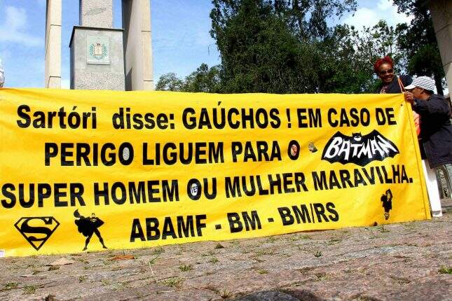 Porto Alegre – Familiares dos servidores da Brigada Militar, protestam contra o parcelamento de salários, em frente aos batalhões da Polícia Militar. – FOTO – Jackson Ciceri