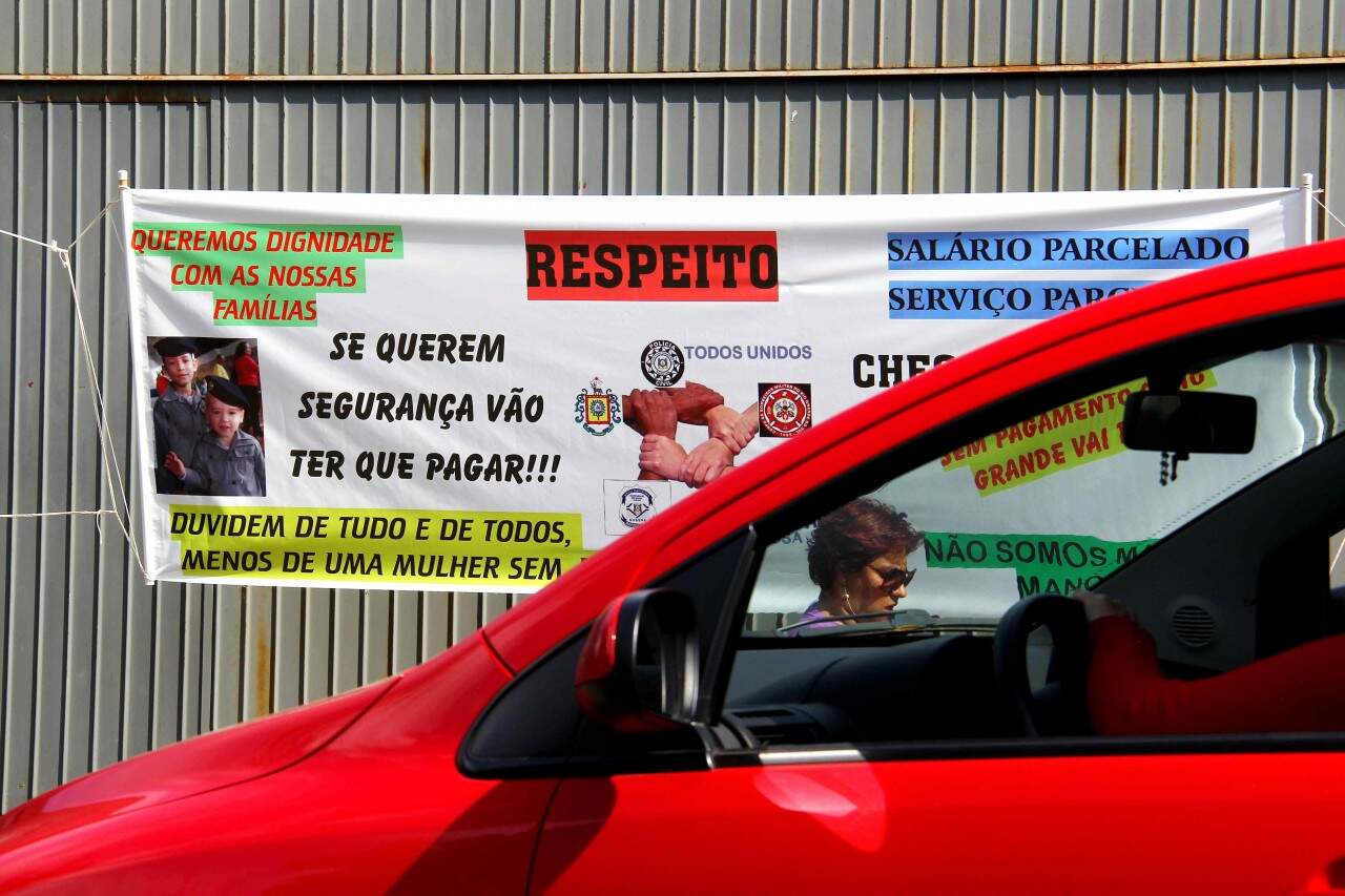 Porto Alegre – Familiares dos servidores da Brigada Militar, protestam contra o parcelamento de salários, em frente aos batalhões da Polícia Militar. – FOTO – Jackson Ciceri