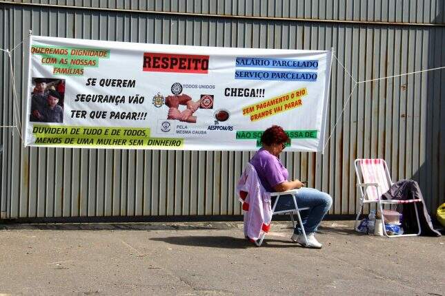 Porto Alegre – Familiares dos servidores da Brigada Militar, protestam contra o parcelamento de salários, em frente aos batalhões da Polícia Militar. – FOTO – Jackson Ciceri