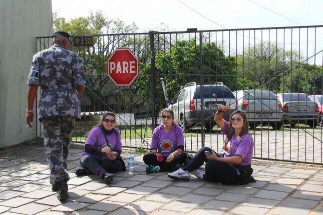 Porto Alegre – Familiares dos servidores da Brigada Militar, protestam contra o parcelamento de salários, em frente aos batalhões da Polícia Militar. – FOTO – Jackson Ciceri