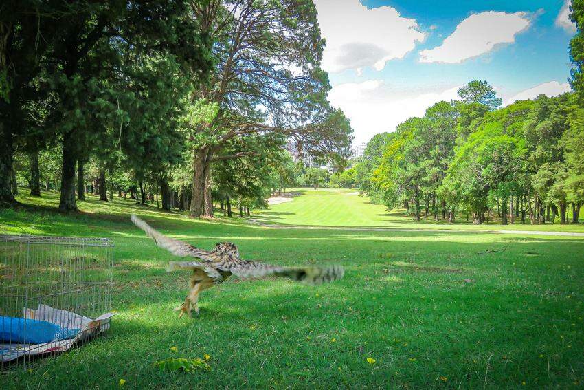A ave, da espécie Asio clamator, foi levada para avaliação veterinária na ONG Voluntários da Fauna e, por estar em boas condições e sem nenhum ferimento, foi solta em local apropriado.