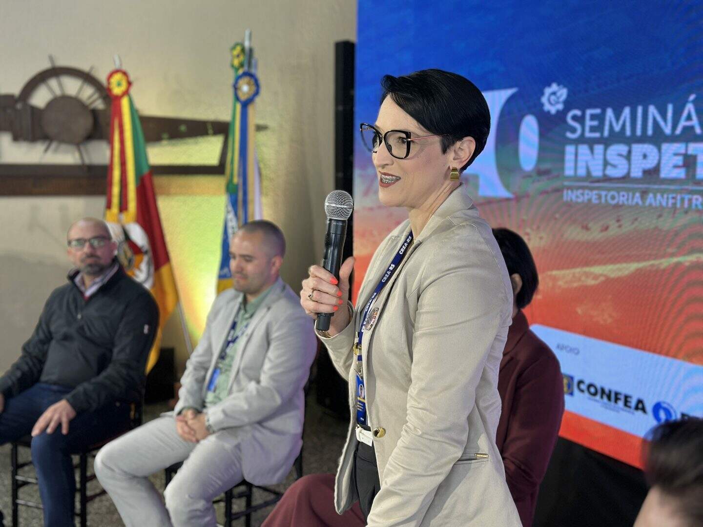 A Eng. Quím. Barbara Franke de Oliveira, inspetora-chefe de Capão da Canoa, celebrou a realização do encontro no Litoral Norte. “Estamos honrados em reunir profissionais de diversas modalidades, todos comprometidos com o desenvolvimento e a valorização das suas áreas”, disse. Já o coordenador das inspetorias, Eng. San. e Seg. Trab. Gabriel Konig, destacou o seminário como espaço fundamental para o diálogo e o aprimoramento das ações regionais.