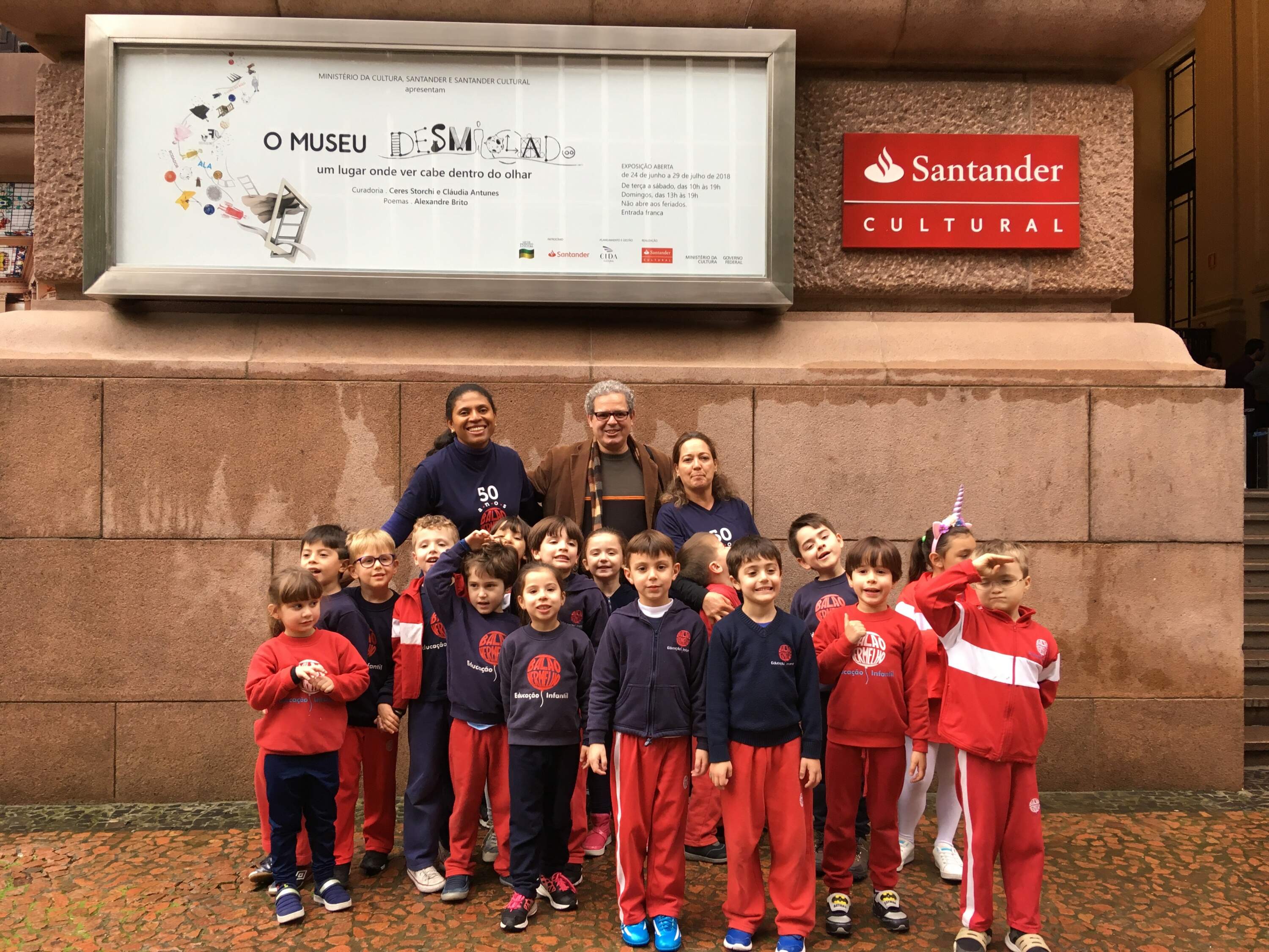 A turma do Jardim B da Escola de Educação Infantil Balão Vermelho foi conferir no Santander Cultural a mostra “Museu Desmiolado”, realizada a partir do livro de mesmo nome do poeta porto-alegrense Alexandre Brito. Na saída, após uma tarde que misturou poesia e artes visuais, o grupo encontrou o autor que conversou com as crianças. Alexandre Brito também participou recentemente da Feira do Livro da Balão Vermelho.