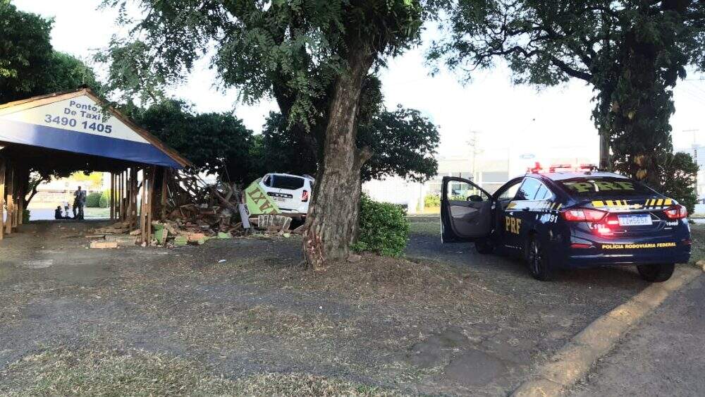 A PRF (Polícia Rodoviária Federal) prendeu, na madrugada desta quarta-feira (18), um criminoso que estava em um carro roubado e colidiu o veículo contra um ponto de táxi em Gravataí, na Região Metropolitana de Porto Alegre.