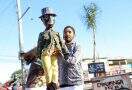 Rafael Bandeira e o pequeno João Vitor Bandeira foram abraçar Jaque. (Foto: Lenara Petenuzzo/especial)
