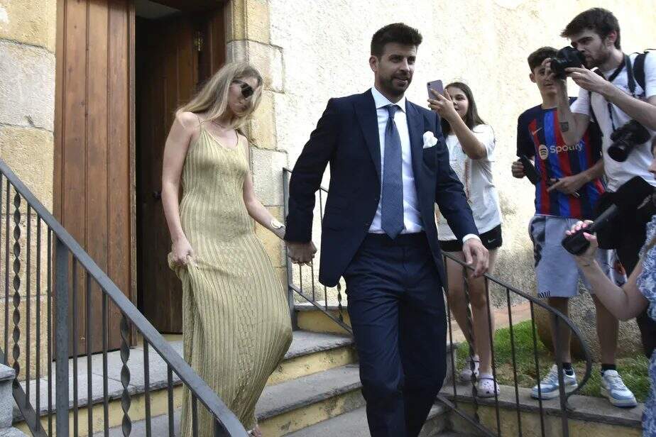 Foto: ReproduçãoGerard Piqué e a namorada, Clara Chía, foam fotografados saindo do casamento do irmão do ex-jogador, Marc Piqué. O casamento dele com María Valls aconteceu em uma igreja de Sant Vicenç de Montalt, na Espanha.