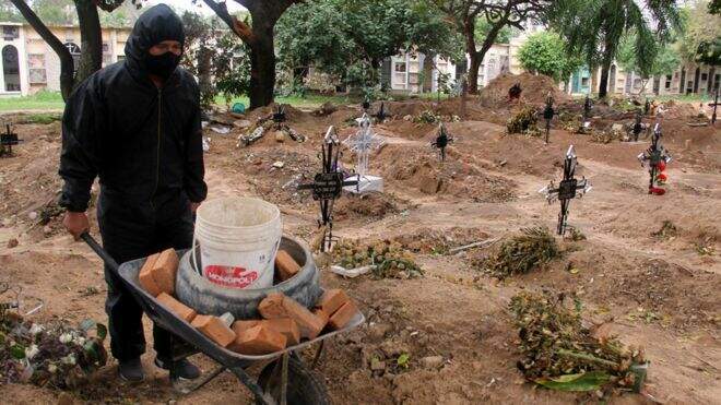 José Luis tem de lidar com a morte todos os dias. Ele é coveiro na Bolívia, e está com as costas doloridas por causa da quantidade de trabalho pelas mortes por coronavírus.