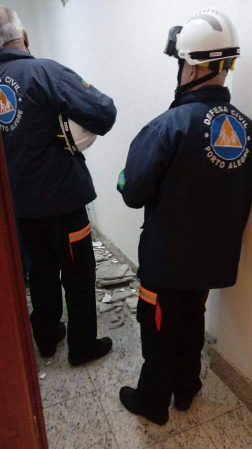 Foto: Defesa Civil/TwitterA Defesa Civil de Porto Alegre foi mobilizada na manhã desta segunda-feira (21) para atender uma ocorrência envolvendo o surgimento de um problema na estrutura de um prédio comercial na rua Félix da Cunha, no bairro Floresta, em Porto Alegre.