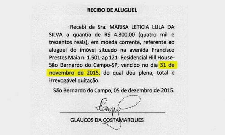 Os documentos teriam sido assinados por Costamarques quando ele estava internado no Hospital Sírio-Libanês, em São Paulo, em novembro daquele ano. A defesa de Lula apresentou 26 comprovantes de aluguel entre agosto de 2011 e novembro de 2015, todos com a letra do empresário.
