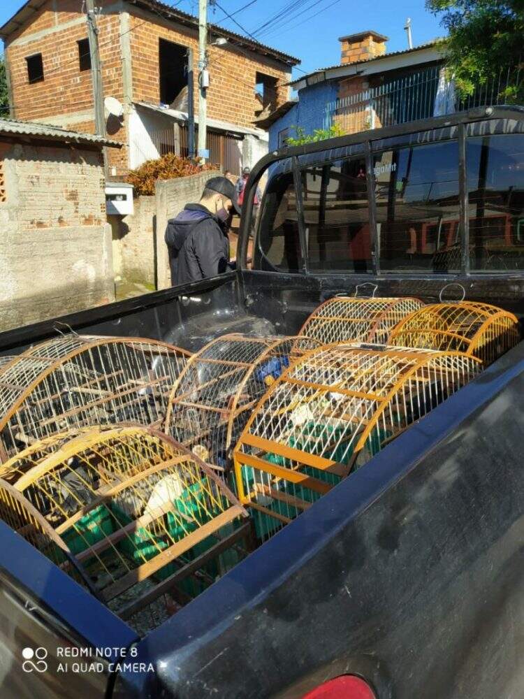 Além dos animais das espécies azulão, bico de pimenta, trinca-ferro e cardeal, foram recolhidas sete gaiolas. A ação faz parte da Operação Voo Livre.