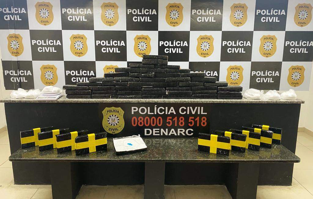 Quando entraram no quarto, os agentes sentiram um forte odor de maconha e realizaram uma revista no local. Foram apreendidos mais de 10 quilos de cocaína pura, 2 quilos de insumo para preparação de cocaína, mais de 20 quilos de maconha e uma balança de precisão.