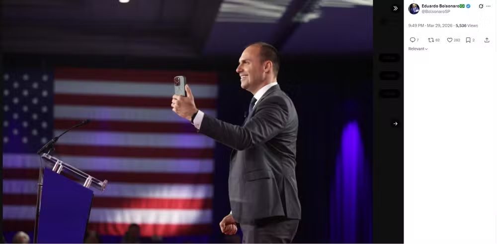 Durante ato conservador nos EUA, Eduardo Bolsonaro (foto) disse que estava gravando o evento para mostrar ao pai