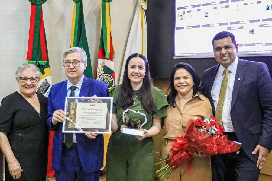 A deputada federal Franciane Abade Bayer Muller recebeu da Câmara Municipal de Canoas o título de Cidadã Canoense. A honraria, proposta pelo vereador Duarte (Republicanos), foi entregue na terça-feira (9) durante o Grande Expediente da sessão ordinária, em reconhecimento aos relevantes serviços prestados pela parlamentar à cidade, tanto por meio da sua atuação legislativa quanto pelo apoio direto a políticas públicas e iniciativas de interesse da população.