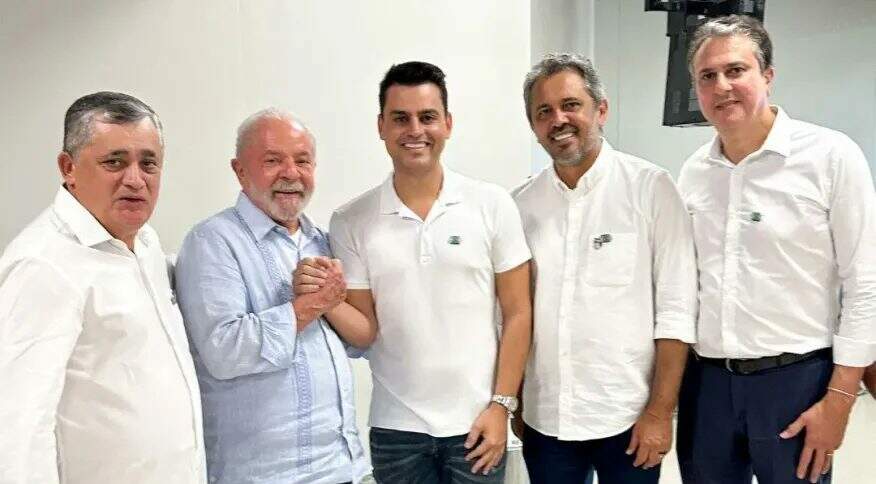 Deputado Yuri Paredão (PL-CE) aparece apertando a mão de Luiz Inácio Lula da Silva ao lado de outros petistas