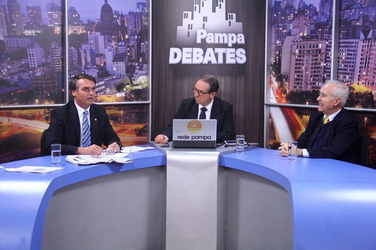 O deputado federal Jair Bolsonaro foi o entrevistado do programa Pampa Debates da Rede Pampa, às 18h desta quinta-feira, sob o comando de Paulo Sérgio Pinto e ao lado do ex-deputado federal Adroaldo Streck, que também integra o time de colunistas do jornal o Sul e demais veículos que integram a Rede Pampa. Polêmico, amado por uns, odiado por outros, ele defendeu seus pontos de vista durante uma hora de duração do programa, que foi ao ar ao vivo e contou com a interação de ouvintes, que via e-mail enviaram centenas de perguntas ao deputado. Ele confessou ser presidenciável, “para dar uma endireitada no Brasil” e disse que quer um partido que “não negocie sua legenda”. O deputado também confessou que gostaria de ver o ex-presidente Lula na prisão, conceituando a situação atual como “a perpetuação do poder no País por parte do PT” e foi categórico ainda ao afirmar que “meu partido se chama Brasil”.