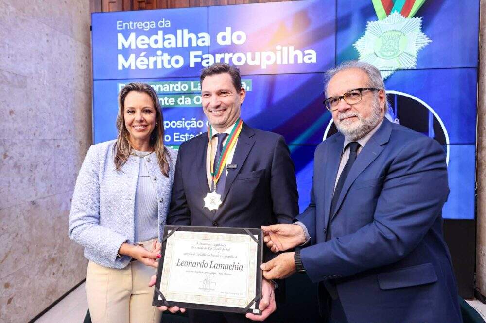 Por iniciativa do deputado Gustavo Victorino (Republicanos), o presidente da OAB/RS, Leonardo Lamachia, recebeu na segunda-feira (11), em solenidade que reuniu expressivas autoridades no Salão Júlio de Castilhos, a Medalha do Mérito Farroupilha, a maior honraria da Assembleia Legislativa.