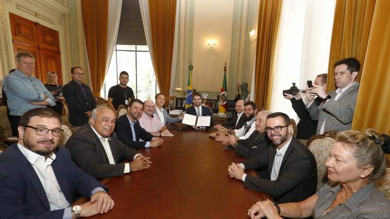 O documento foi entregue ao governador pelo presidente da Assembleia Legislativa, Luís Augusto Lara, que esteve no Palácio Piratini acompanhado dos deputados Neri, O Carteiro, Gaúcho da Geral, Vilmar Lourenço, Dirceu Franciscon e Aloísio Classmann. Por parte do Executivo, participaram os secretários Marco Aurelio Cardoso (Fazenda), Claudio Gastal (Governança e Gestão Estratégica) e Regina Becker (Trabalho e Assistência Social).