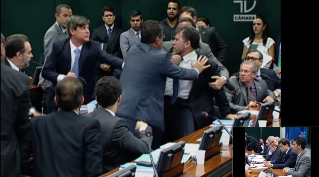 Em sessão tensa do Conselho de Ética da Câmara dos Deputados na quinta-feira, os colegas Zé Geraldo (PT-PA) e Wellington Roberto (PR-PB) partiram para a agressão física e verbal. O incidente, repleto de trocas de ofensas e empurrões, começou durante uma discussão sobre o painel de registro de presenças e acabou se agravando quando foi mencionado um requerimento para pedir o afastamento do presidente da Câmara, Eduardo Cunha (PMDB-RJ).