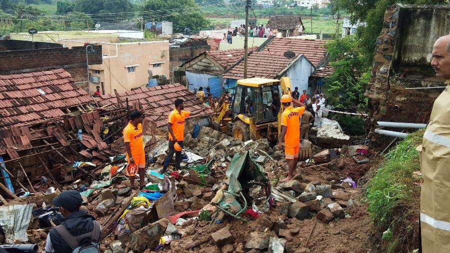 O muro, de seis metros de altura, desabou durante a madrugada em um ponto a 50 quilômetros da cidade de Coimbatore, informou o jornal Times of India.