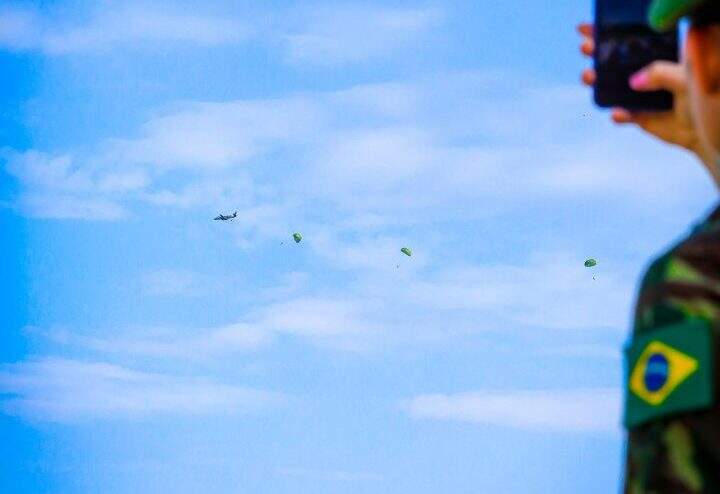 Pela primeira vez, oito paraquedistas do Exército saltaram sobre o Guaíba