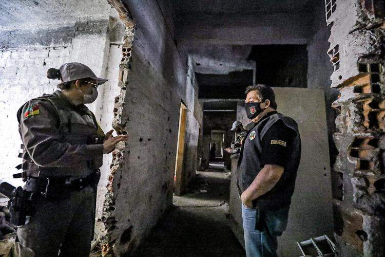 Foto: Mateus Raugust/PMPAFoi concluída neste domingo (26) a desocupação total do prédio XV de Novembro, conhecido como Esqueletão, no Centro Histórico de Porto Alegre. A maioria dos moradores e comerciantes que ainda permanecia no prédio deixou o local voluntariamente ainda na noite deste sábado (25), segundo a prefeitura. Quando a operação de cumprimento do mandado de desocupação iniciou-se, às 7h deste domingo, havia três moradores no prédio, que saíram pacificamente do local, segundo o Executivo Municipal.