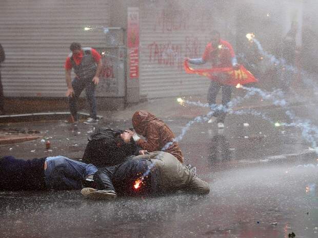 Por ordem do presidente Recep Tayyip Erdogan, em torno de 20 mil policiais bloquearam os acessos à praça Taksim, local onde 34 pessoas morreram em um ato de 1 de maio há 38 anos e principal centro de protestos da cidade nas manifestações de 2013. Os ativistas carregavam faixas com mensagens contra Erdogan, que comanda o país há 13 anos e que, nos últimos anos, aprovou medidas contra protestos.