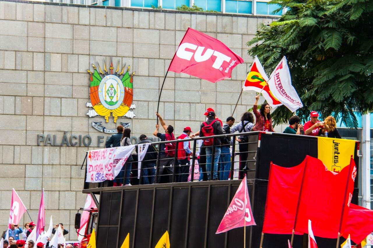 Em frente ao Piratini, os pronunciamentos de dirigentes de CUT, CTB (Central dos Trabalhadores e Trabalhadoras do Brasil), Cpers-Sindicato (Centro dos Professores do Estado do Rio Grande do Sul) e outras entidades mobilizaram os trabalhadores para a construção de uma greve geral. O presidente da CTB-RS, Guiomar Vidor, disse que não há uma data prevista para a convocação de uma greve.