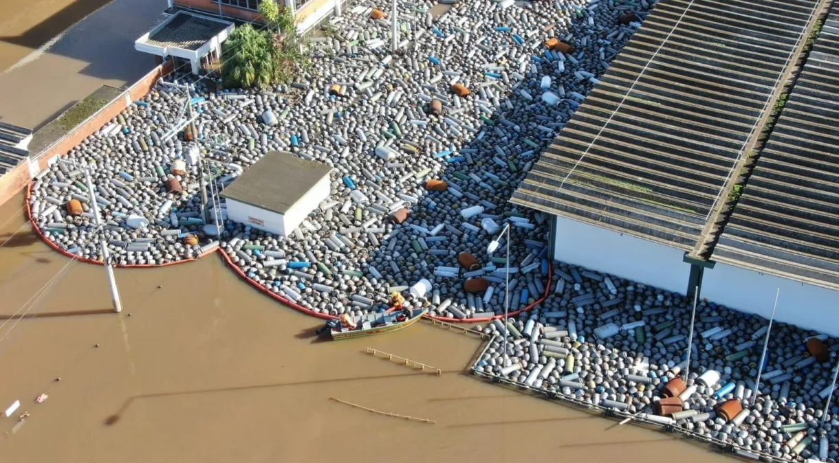 Com a enchente, os botijões vazios começaram a boiar na água. Após vistoria, a solução encontrada foi a colocação das barreiras. “A Copa Energia está vigilante com a situação das suas instalações e cuidando dos seus colaboradores, enfrentando os desafios com união e apoiando o Estado do Rio Grande do Sul”, disse a empresa.