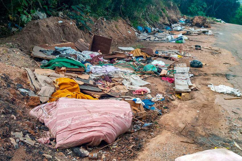 A via é alvo de descarte irregular de resíduos.
