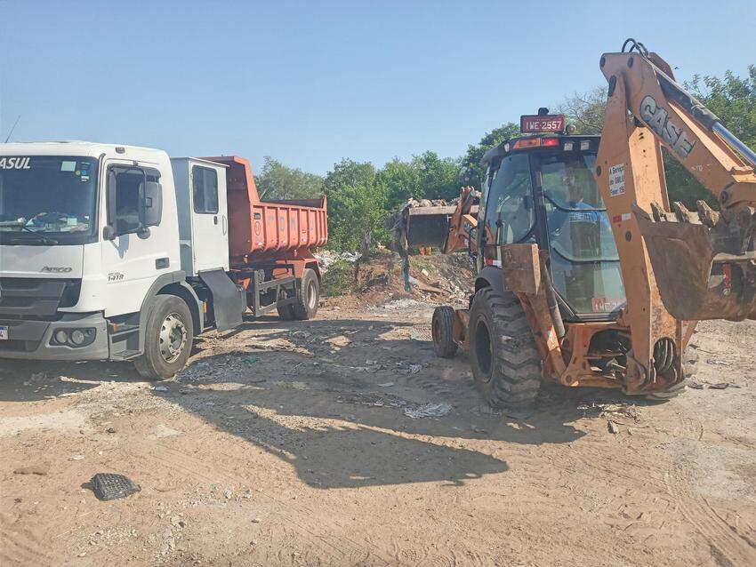 Uma equipe de oito garis e servidores, com o auxílio de duas retroescavadeiras, oito caminhões e um coletor, fez a limpeza do espaço.