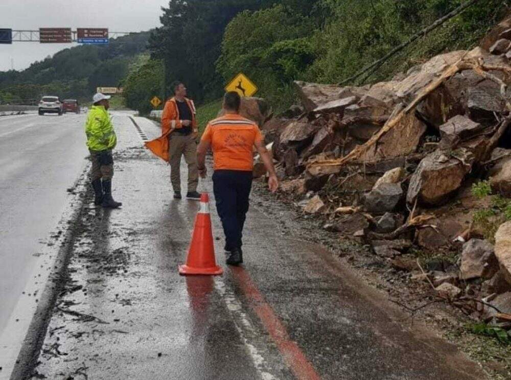 BR-280 – No km 77, o Dnit executou uma faixa extra de forma emergencial para garantir a trafegabilidade local nos dois sentidos da rodovia, após deslizamento de barreira. As equipes já limparam a maior parte das áreas de escorregamento, agora, o trabalho está focado em recuperar a estrutura da via. Em outro trecho, a interdição é total entre o km 84 e o km 122 e equipes estão atuando na limpeza e recuperação da pista sem previsão para liberação. O Departamento orienta os motoristas a utilizarem rota alternativa no sentido litoral/Paraná acessando a BR-116 até o entroncamento com a BR-470.
