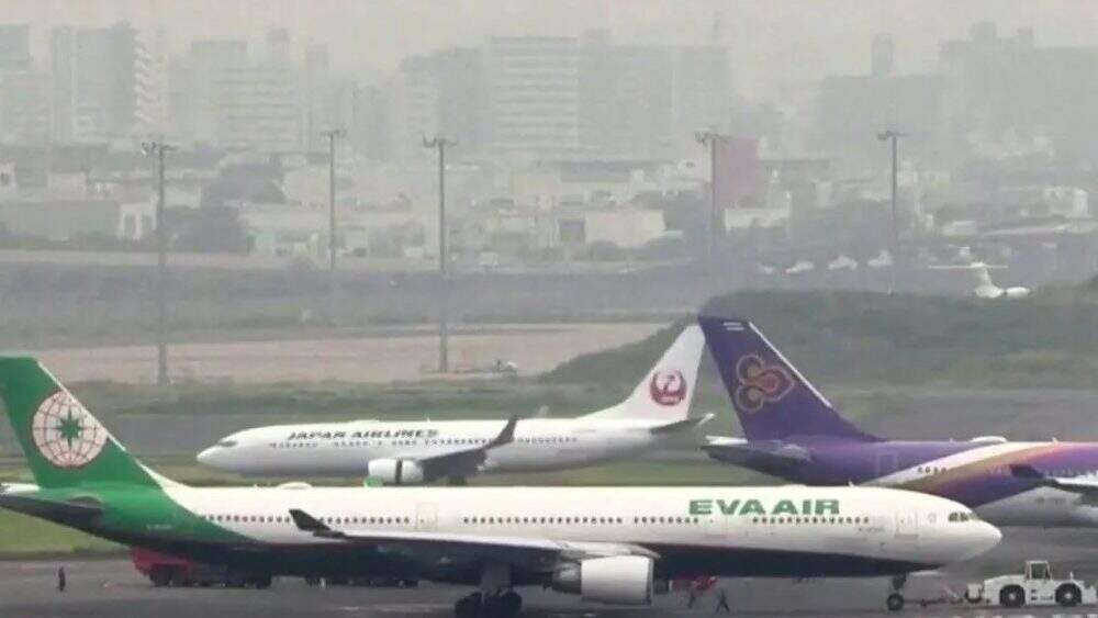 A emissora mostrou imagens de jatos da Eva Airways e da Thai Airways de Taiwan no solo. Parte da asa do avião da Thai Airways parecia estar quebrada, e o que parecia ser fragmentos podia ser visto perto da pista.
