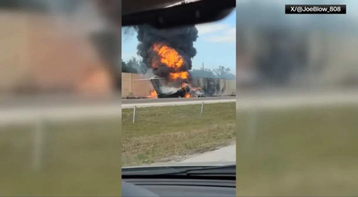 Foto: X/@JoeBlow_808Duas pessoas morreram após um avião de pequeno porte cair em uma rodovia interestadual na Flórida, nos Estados Unidos.