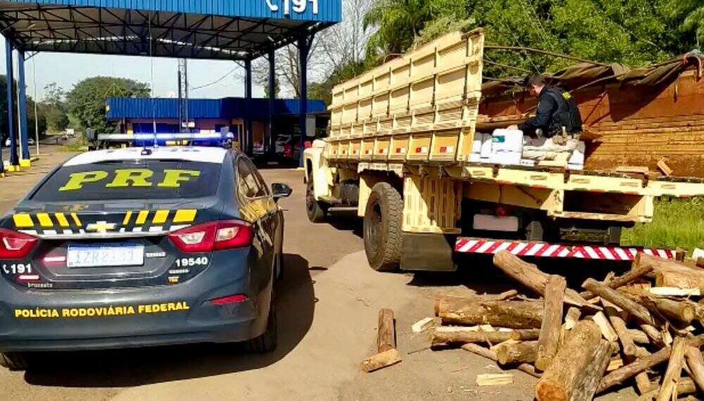 Ao verificarem a carga, os agentes encontraram 100 galões de agrotóxicos contrabandeados, que estavam escondidos embaixo da lenha. O produto é proibido no Brasil e causa riscos à saúde humana e ao meio ambiente.
