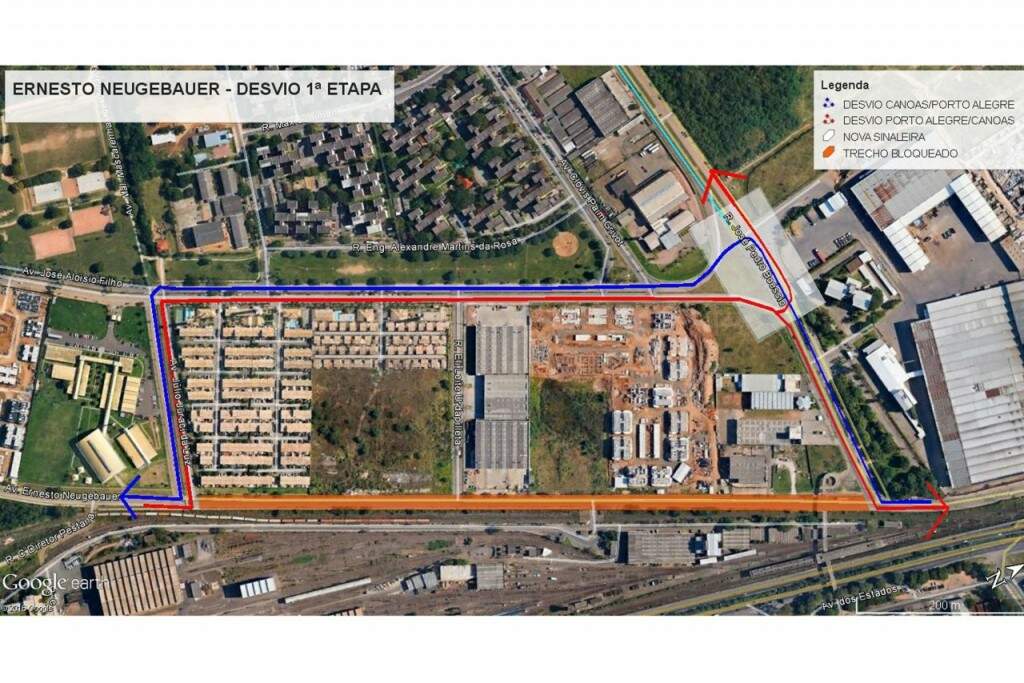 A partir de segunda-feira (18), a Ernesto Neugebauer será bloqueada para o trânsito de veículos, entre a rua José Pedro Boéssio e a avenida Júlio Juraci da Luz, por um período de 60 dias. Em razão da alteração do fluxo do local, a EPTC implantará uma nova sinaleira no entroncamento da avenida José Aloísio Filho com a rua José Pedro Boéssio.
