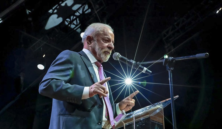 As publicações exibem um trecho real do discurso do petista realizado nesta segunda, durante a visita de Estado do presidente da África do Sul, Cyril Ramaphosa. No vídeo, Lula diz: “Aqui, na América do Sul, nós nos colocamos como uma região de paz. Aqui ninguém tem bomba nuclear, aqui ninguém tem bomba atômica, aqui os nossos drones são para agricultura, para fins de tecnologia e não para guerra. Então nós pensamos em defesa como dissuasão, mas eu não sei se o companheiro Ramaphosa percebe que, se a gente não se preparar na questão de defesa, qualquer dia alguém invade a gente”.