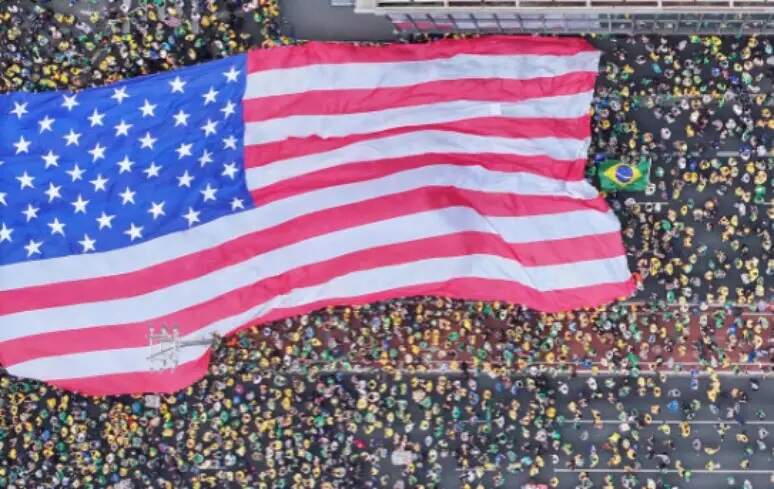 O deputado Eduardo Bolsonaro (PL-SP) disse nas redes sociais que a bandeira gigante dos Estados Unidos exibida na Avenida Paulista, em manifestação em pleno Dia da Independência do Brasil, foi um ato de “agradecimento” ao presidente americano, Donald Trump.