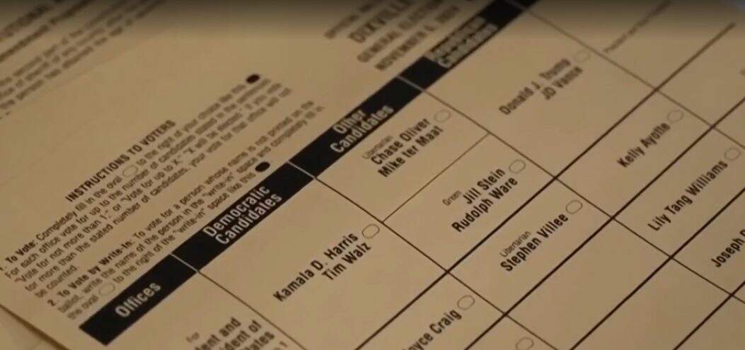 Foto: Reprodução de TVA primeira urna das eleições nos Estados Unidos foi aberta na pequena comunidade de Dixville Notch, em New Hampshire, nesta terça-feira (5). Por lá, a votação começou exatamente à meia-noite no horário local (2h em Brasília) e foi encerrada minutos depois. Kamala Harris e Donald Trump empataram, com três votos cada.