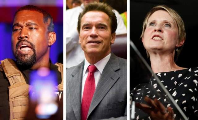 O rapper Kanye West usou suas redes sociais no último mês de julho para anunciar que pretendia se candidatar ao cargo de presidente nas eleições dos Estados Unidos em 2020. O marido de Kim Kardashian não é o primeiro nome conhecido do público a concorrer a um cargo importante na política dos EUA. Relembre a seguir outros artistas que lançaram candidaturas – com sucesso ou não – a cargos como governador, prefeito e presidente nas urnas norte-americanas ao longo das décadas.
