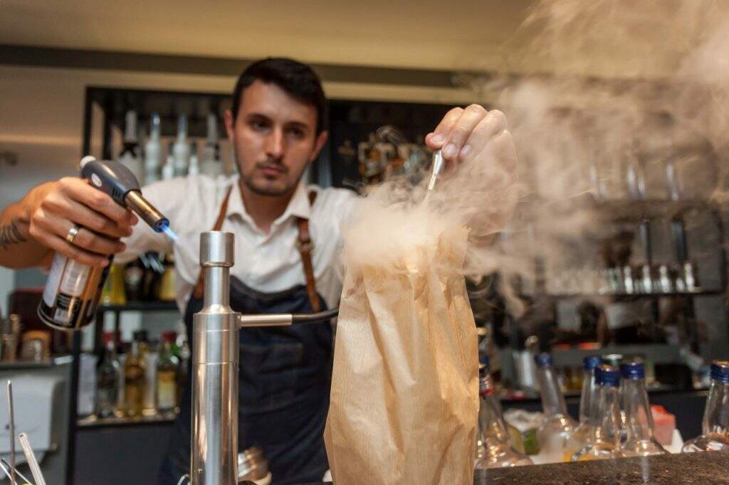 O barman Richard Machado preparando drink com apurada técnica. (Foto: Pedro Antonio Heinrich/especial)