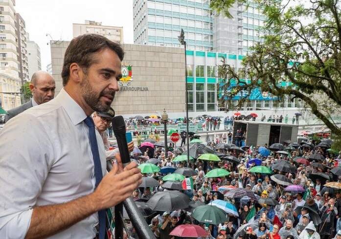 Durante manifestação realizada nessa quarta-feira (10) pela Federação dos Trabalhadores na Agricultura (Fetag) em frente ao Palácio Piratini, no Centro Histórico de Porto Alegre, o governador Eduardo Leite reiterou o compromisso de defender e dialogar com os protagonistas do agronegócio gaúcho. “A pauta é justa e legítima”, ressaltou, de microfone em punho, do alto de um carro de som.