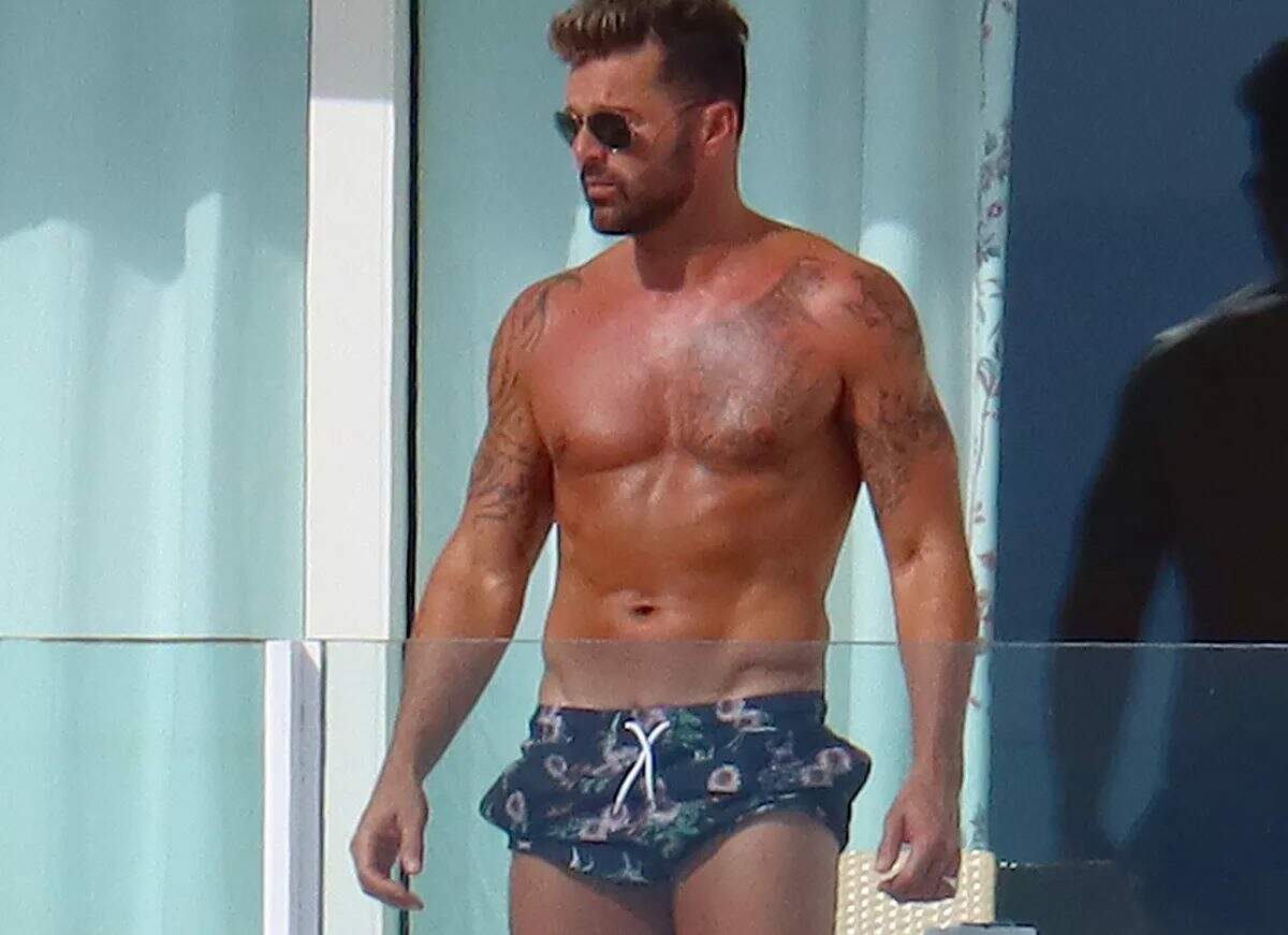 Tranquilo, Ricky usava apenas óculos escuros além do shortinho e exibiu o abdômen trincado enquanto tomava sol. Ele se juntará à Christina Aguilera para se apresentar no evento da Fundação Americana para Pesquisa de AIDS em Cannes nesta quinta-feira (26).
