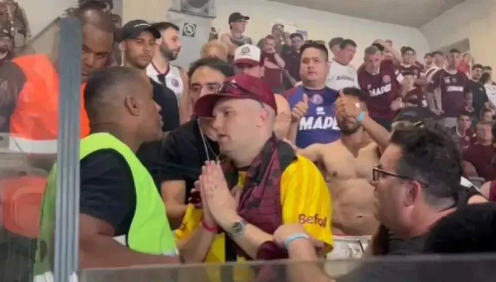 Foto: Reprodução/Redes sociaisUm torcedor do Lanús foi flagrado ao fazer gestos racistas no duelo com o Cruzeiro, no Mineirão, em Belo Horizonte, na noite desta quarta-feira (23). De acordo com um segurança do estádio, o argentino simulou um “arremesso de bananas” em direção à torcida brasileira. As equipes se enfrentaram pelo jogo de ida da semifinal da Copa Sul-Americana.