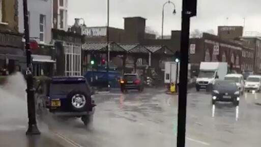 As imagens mostram o motorista dirigindo próximo a uma calçada de uma rua em Kentish Town, durante uma chuva forte recente, e molhando os pedestres. O condutor pode ser acusado de direção imprudente. Veja as imagens.