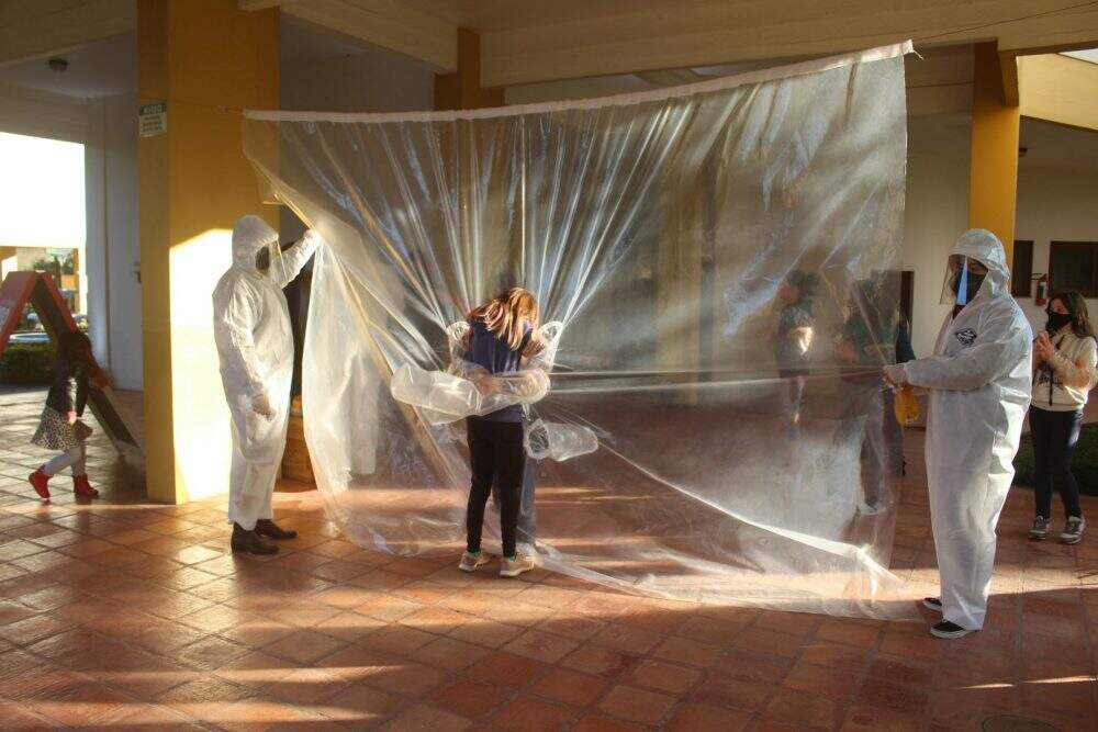 Foi montada no local uma estrutura com cortinas de plástico, a exemplo da solução utilizada em um vídeo canadense que viralizou na internet no início da pandemia. Participantes usaram luvas descartáveis, e as duas cortinas utilizadas na ação eram limpas com álcool após cada uso.
