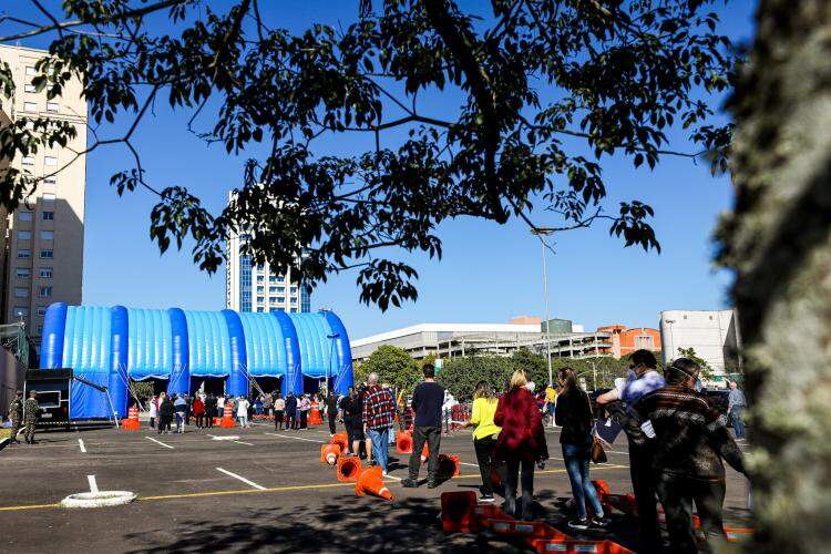 Imunização ocorreu na tenda instalada no estacionamento externo do shopping Bourbon Country.