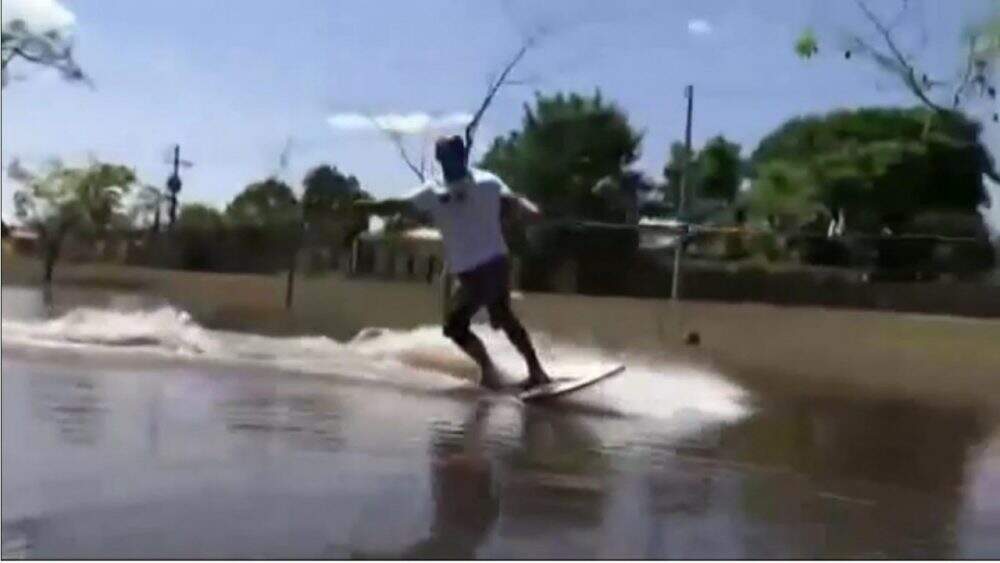 O publicitário Sérgio Marques, de Brasília (DF), publicou um vídeo em que aparece surfando em uma poça d’água que se formou no canteiro central de uma avenida na Capital Federal. Sérgio diz que voltava do Lago Paranoá, onde praticava kitesurfe, quando teve a ideia.