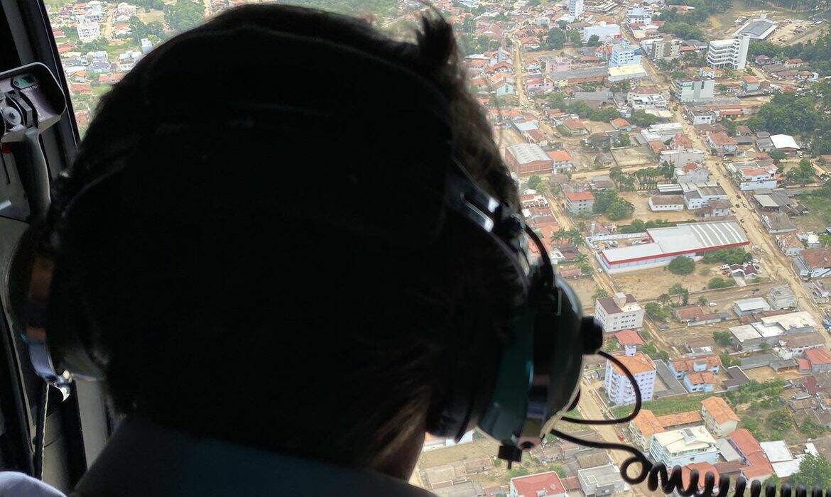 No sábado (19), Bolsonaro sobrevoou as áreas atingidas por fortes chuvas em Santa Catarina. Pelo menos 17 pessoas morreram devido aos temporais no Vale do Itajaí.